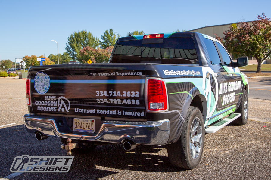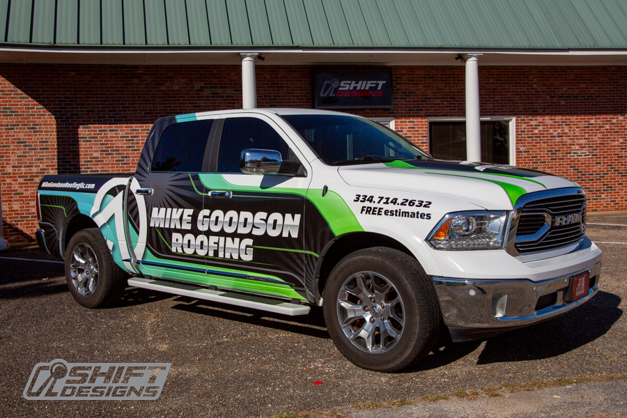 Shift Designs is known for creating custom vehicle wraps in Dothan, Alabama that combine visual impact with practical business value. This Mike Goodson Roofing Ram 1500 wrap is a strong example of how effective branding can help a local service company stand out in a competitive market.